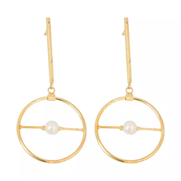 Brinco Palito Pingente Com Círculo e Pérola By Kumbayá Joias